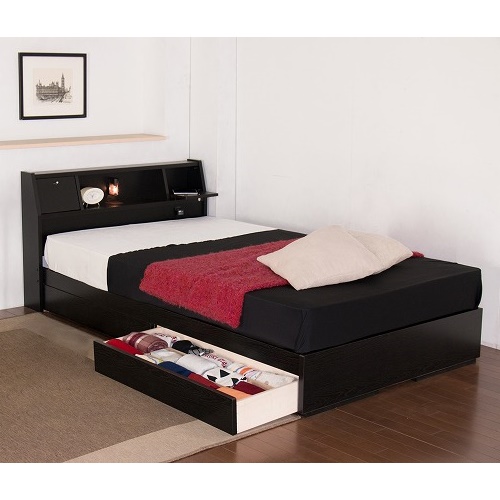 引き出し収納付きシングルベッド(寝具なし)(黒) レンタル