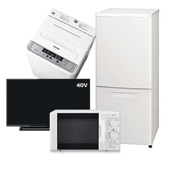 家電4点セット (冷蔵庫140L、洗濯機4.2㎏、電子レンジ、液晶TV40) レンタル
