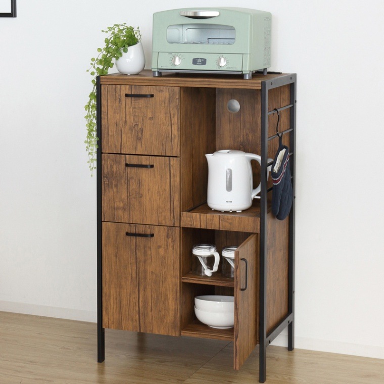 【Point3】便利なコンセント付き。電子レンジや炊飯器、ケトルなど調理家電をまとめて収納できます。※合計1500Wまで